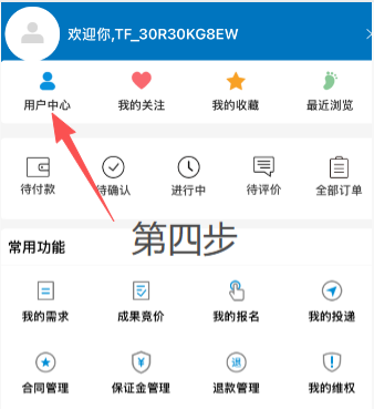 ④点击“用户中心”;