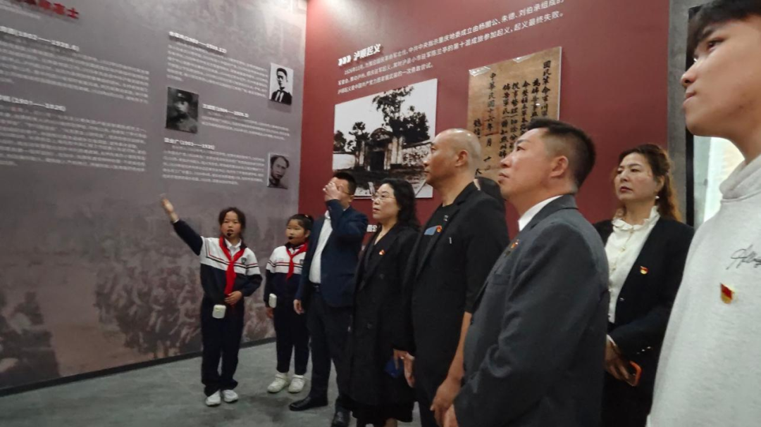 祭扫墓区后,来自泸县实验学校的红领巾讲解员江依诺、陈俊宇,用稚嫩却坚定的声音,讲述先烈们奋勇杀敌、不怕牺牲的英勇事迹,生动还原先辈们在枪林弹雨中冲锋陷阵、为护战友甘愿奉献生命的壮烈瞬间,令在场所有人深受触动。随后,会员们走进革命烈士纪念馆,通过珍贵史料与实物展品重温峥嵘岁月,接受深刻的红色精神洗礼,感悟革命先辈无私奉献的崇高精神。