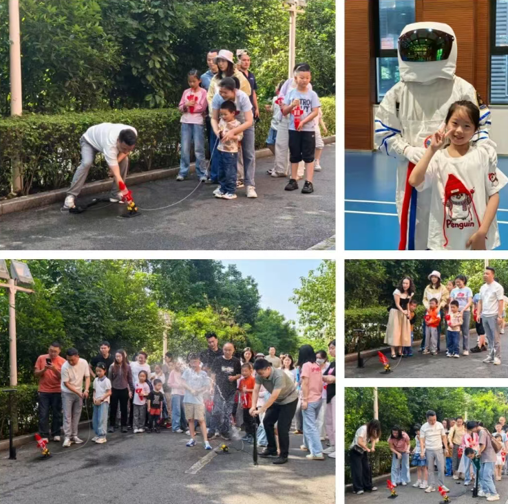 最令人期待的莫过于水火箭的制作与发射。职工家庭齐心协力,共同动手制作水火箭,当一枚枚水火箭腾空而起,划出一道道弧线时,现场爆发出阵阵欢唿。这一刻,“工娃”们不仅汲取到了航天知识,更感受到了成功的喜悦与自豪。
