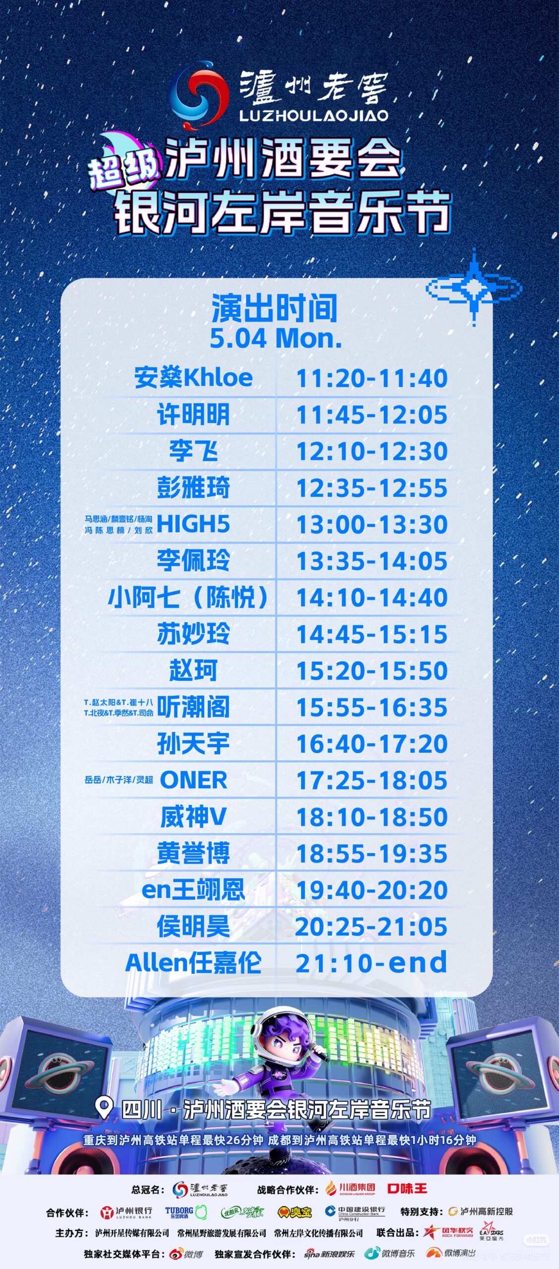 5月3日&5月4日演出时间表来啦‼️请查收 泸州老窖·泸州酒要会·超级银河左岸音乐节 5月3日&5月4日演出时间表请查收⬆️ 🗓️演出时间:5月3日-5月5日 📍演…