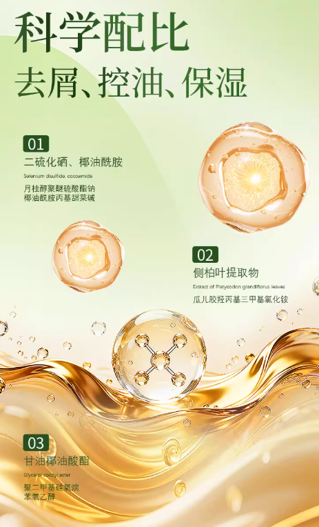 • 底层(头皮屏障层):神经酰胺与水解角蛋白构建防护膜,减少外界刺激(如粉尘、污染)对头皮的影响,降低头屑复发诱因。