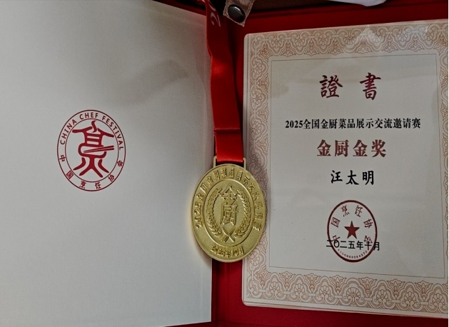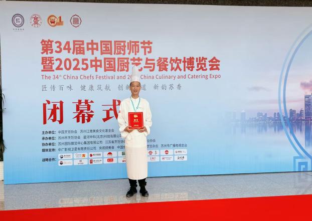10月16日至19日,由中国烹饪协会主办的第34届中国厨师节暨2025中国厨艺与餐饮博览会在江苏苏州举行。四川省烹饪协会组成的40人参赛团队参加了此次盛会,并先后参与2025年中餐厨艺世界锦标赛、全国金厨菜品展示交流邀请赛、中国烹饪名人堂师徒传承鉴证盛典等活动。泸天化宾馆厨师长汪太明作为泸州市餐饮协会代表全程参与赛事活动,并荣获2025全国金厨菜品展示交流邀请赛金奖。