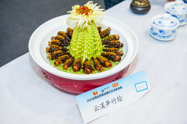 经过3天激烈角逐,汪太明精心打造的极具地方特色的菜品“云溪笋竹烩”凭借地道川味与创新工艺脱颖而出。菜品选用四川高山新鲜竹笋作为原料,经精细切割与慢火烩制,融合传统技法及现代调味理念,口感鲜嫩、层次丰富,完美彰显川菜“鲜、香、嫩、爽”的经典特色,赢得评委好评,荣获2025全国金厨菜品展示交流邀请赛金奖。