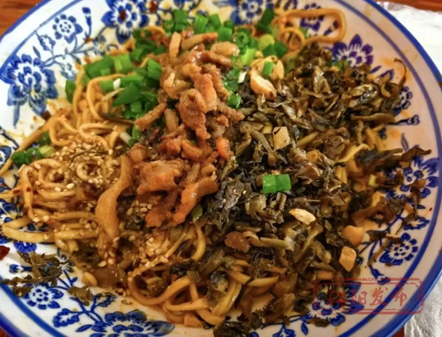 铺满芽菜、花生碎和肉沫,拌匀后入口浓烈干香,辣度适中,口感丰富,回味还有芽菜的香气。