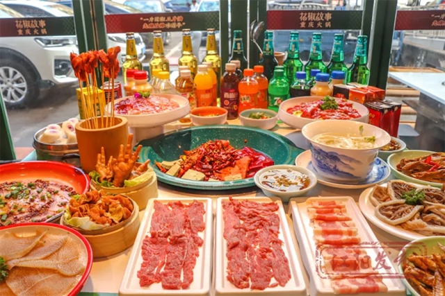 一次性牛油锅底香浓不腻,鲜切牛肉、毛肚、鸭肠“七上八下”,配上一份耙鸡脚,瞬间点燃味蕾。
