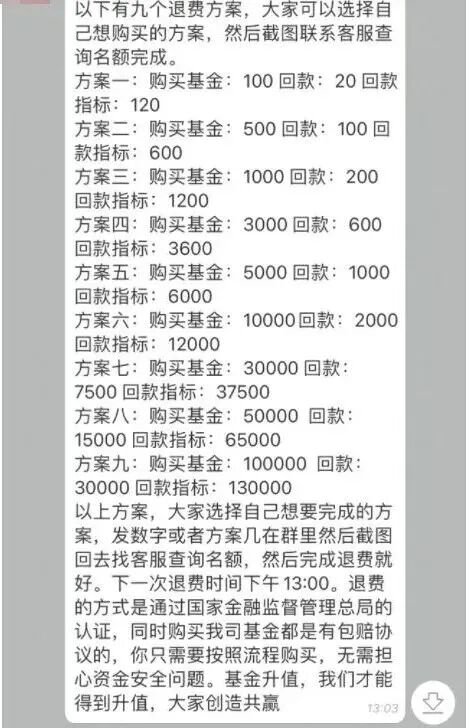 诈骗分子通过非法渠道获取个人信息后,将伪造政府部门、公司、机构文件邮寄给受害人,以办理培训退费、投资退费为由,诱导其加入退费群。待受害人进群后,诈骗分子通过发送营业执照、工作证,营造多人成功退费的假象来获取受害人信任,实际上这些都是假的,群里的成员也都是“托”。