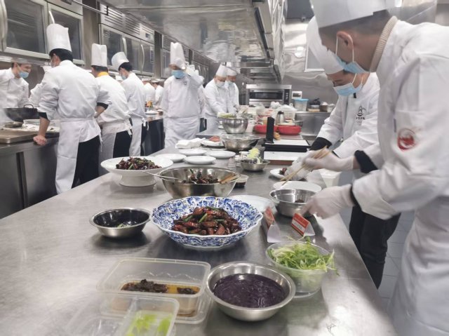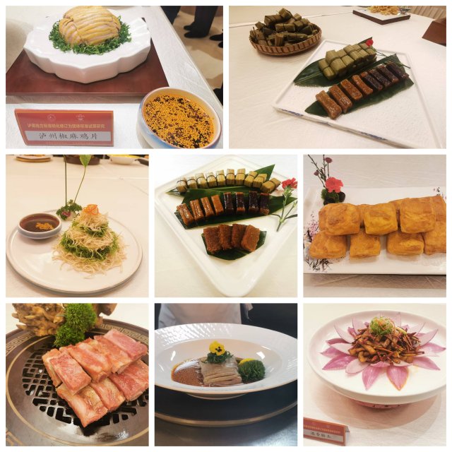 颠勺翻锅间香气四溢,摆盘点缀处匠心尽显。在世纪酒店标准化后厨操作间内,中华金厨奖获得者、泸菜名店主厨及泸菜大师工作室的烹饪大师们轮番登台献艺,掌勺烹制道道经典泸菜。菜品制作完成后,泸菜烹饪大师们对试吃菜品进行专业打分,从食材选用、烹饪火候、风味呈现、造型摆盘等关键维度细致考评,为后续泸菜标准的修订转化提供精准参照。此次亮相的菜品丰富多样,既有彰显酒城特色的“中国酒城·名酒宴”10道佳肴,也有创意十足的“酒入肴餐配酒”10道菜品,还有承载乡愁记忆的“泸县九大碗”10道美味,加之其余32道地方标准转化菜品,共计62道泸菜佳肴依次登场,色、香、味、形面面俱佳,令人垂涎欲滴。