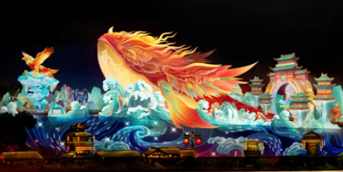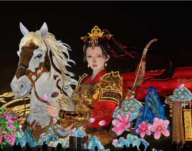 作为国家级非遗,本届自贡灯会以“灯绘华夏”为脉络,串联彩灯、扎染等非遗技艺与华夏神话、历史故事,设置十大主题板块,打造11组大型灯组与200余组中小型灯组。210米长的“神奇华夏”、180米长的“木兰传奇”等灯组气势恢宏,35米高的“华结映门”实现正背面视觉统一,AI交互年兽灯组可与游客趣味互动。