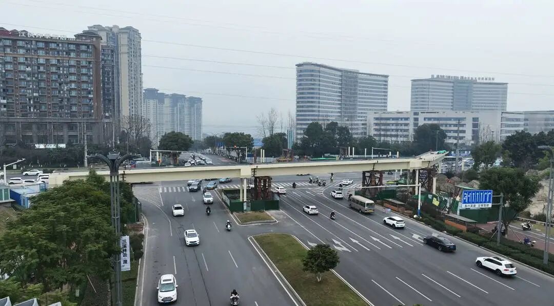 此外,该项目配套的港湾式公交站台经优化调整,设于天桥出口附近,实现了人行过街设施与公共交通的无缝衔接,市民通行天桥后即可便捷换乘,出行效率与安全性将得到明显提升。